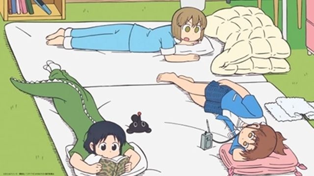 あらゐけいいち先生の漫画は、コマ割りや間の取り方、独特の描き文字(効果音)など、紙媒体ならではの演出で笑わせてくれるのが特徴です。アニメ版ではそうしたマンガ独自のギャグ表現をどう再現するかが一つの鍵でした。先述の通り京都アニメーションは「漫画をそのまま動かす」方針で臨み、コマでの間やテンポ感を映像で巧みに表現しています。例えば登場人物がずっこける瞬間の間(ま)や、シュールなオチの後の静寂など、漫画で笑いを生むタイミングをアニメでもしっかり感じ取れるよう演出されています。原作の1コマ1コマを尊重しつつ、背景でちょっとした動きを加えたり音響効果を足したりすることで、原作以上の笑いに仕立てている箇所もあり、ファンにはたまりません。